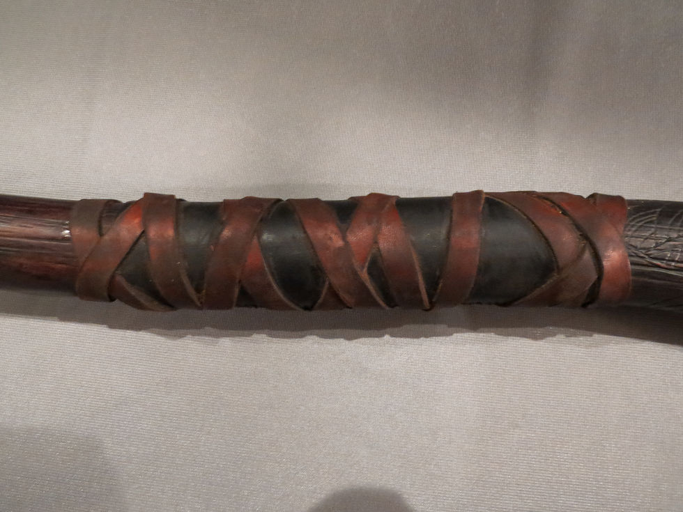 - Wrapped the grip section in black leather cut from RingSun Genuine Leather Sheets and stitched using black thread.